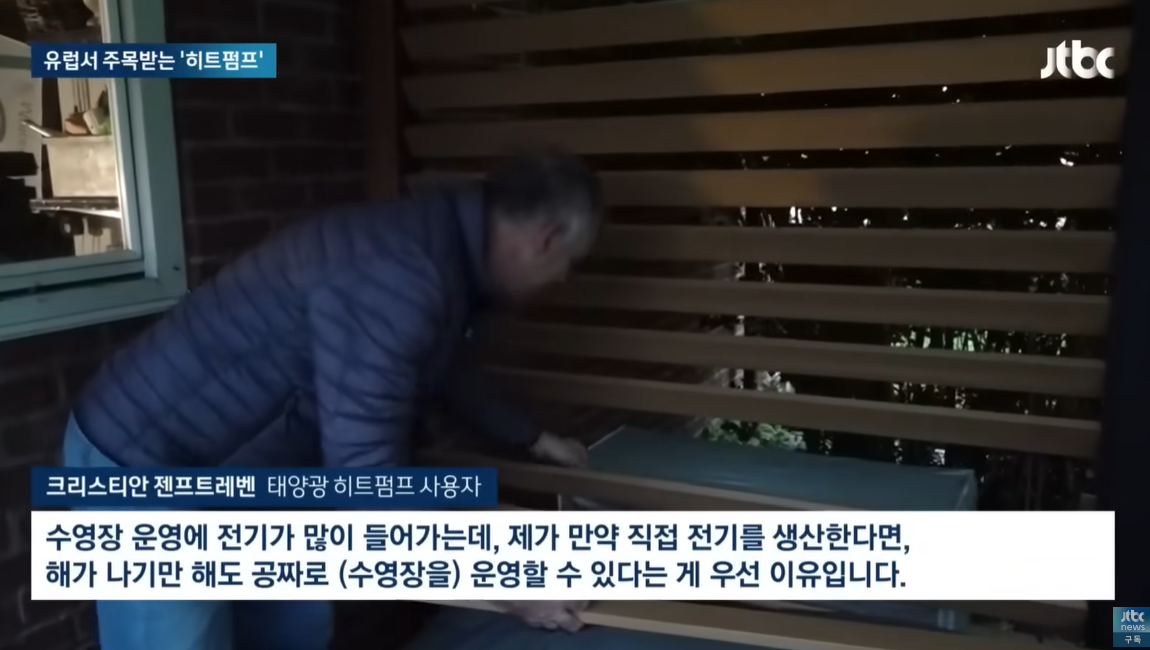 [크리스티안 젠프트레벤/태양광 히트펌프 사용자 : 수영장 운영에 전기가 많이 들어가는데, 제가 만약 직접 전기를 생산한다면, 해가 나기만 해도 공짜로 (수영장을) 운영할 수 있다는 게 우선 이유입니다.]